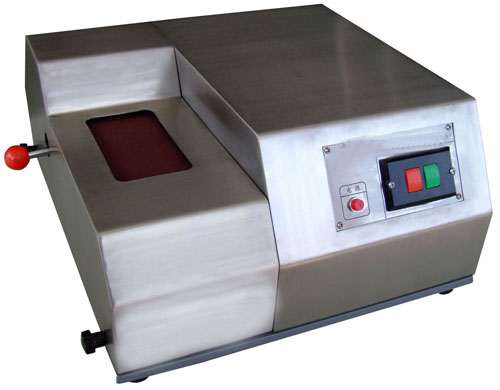 MY-1型光譜砂帶磨樣機(jī)的工作原理。電機(jī)主軸上安裝帶橡膠的大滾筒,帶動(dòng)經(jīng)砂帶連接的從動(dòng)小滾筒,在電機(jī)的驅(qū)動(dòng)下砂帶作直線運(yùn)動(dòng),將磨樣放在砂帶上即可進(jìn)行試樣的磨削以滿足光譜測量對(duì)試樣的要求。